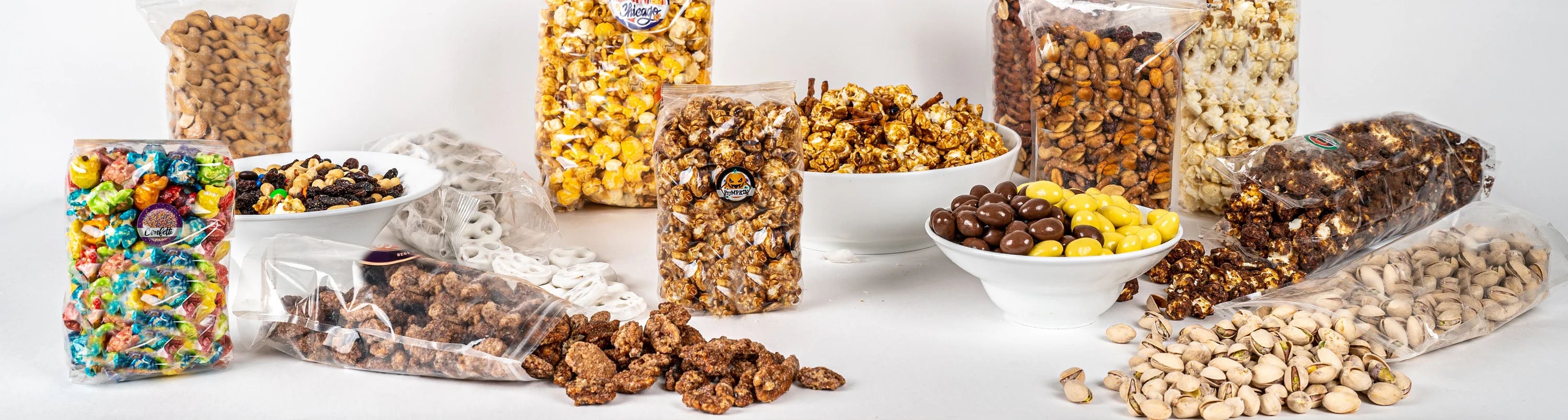 Our extensive catalog includes our world famous gourmet popcorn and nuts, to specialized candies, dried fruit and specialty items.
